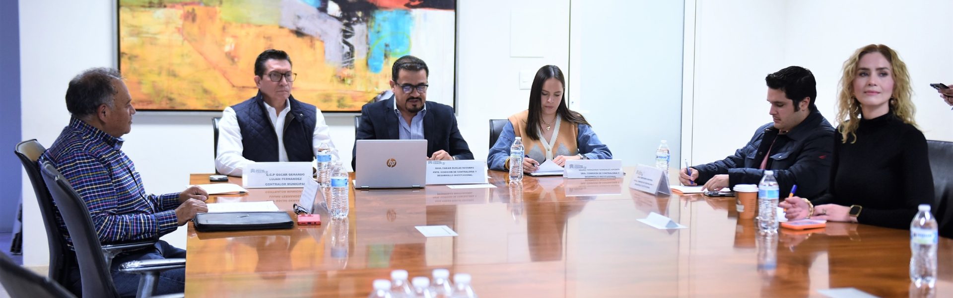 En la sesión estuvieron presentes los ediles Raúl Fabián Ruelas Navarro, presidente de la Comisión de Contraloría y Desarrollo Institucional; así como María Fernanda González Aponte; Diego Ontiveros Rentería; Natalia Guadalupe Fernández Martínez; y Zazil Pacheco Pérez.