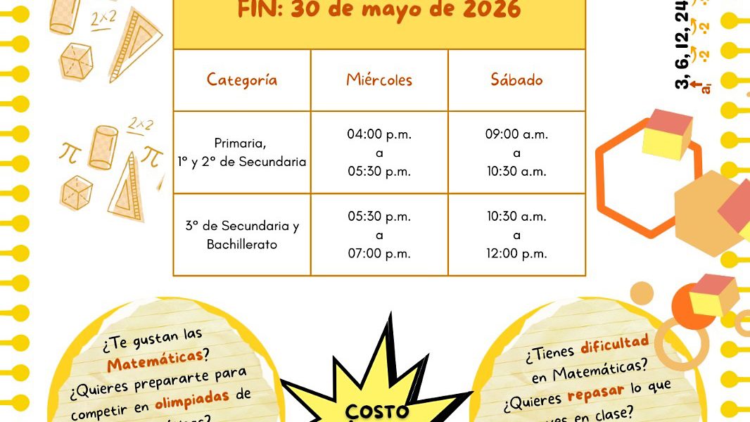 Las sesiones estarán disponibles para nivel primaria y primero y segundo de secundaria, los miércoles de 16:00 a 17:30 horas y sábados de 9:00 a 10:30 horas, mientras que, para tercero de secundaria y bachillerato serán los miércoles de 17:30 a 19:00 horas y sábados de 10:30 a 12:00 horas; los participantes podrán elegir el día que más les convenga o asistir a ambas sesiones sin costo adicional.