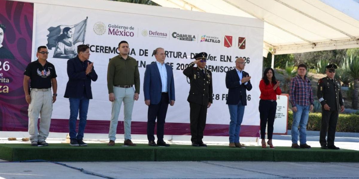 28 Febrero 2026; Saltillo, Coahuila.- El secretario del Ayuntamiento, Francisco Saracho Navarro, acudió en representación del alcalde Javier Díaz González a la Ceremonia de Apertura del Primer Escalón 2026 del Servicio Militar Nacional, clase 2007 y anticipados, donde reiteró el compromiso del Gobierno Municipal de Saltillo de trabajar de manera coordinada en materia de seguridad.