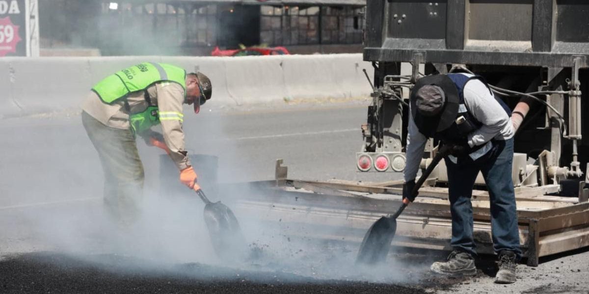 Asimismo, con el respaldo de maquinaria especializada a base de calor, el Ayuntamiento de Saltillo lleva a cabo trabajos de reparación del asfalto deteriorado y reposición de carpeta asfáltica en las principales vialidades de la capital de Coahuila.