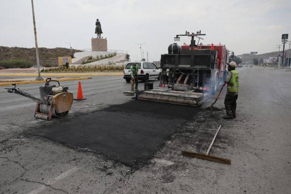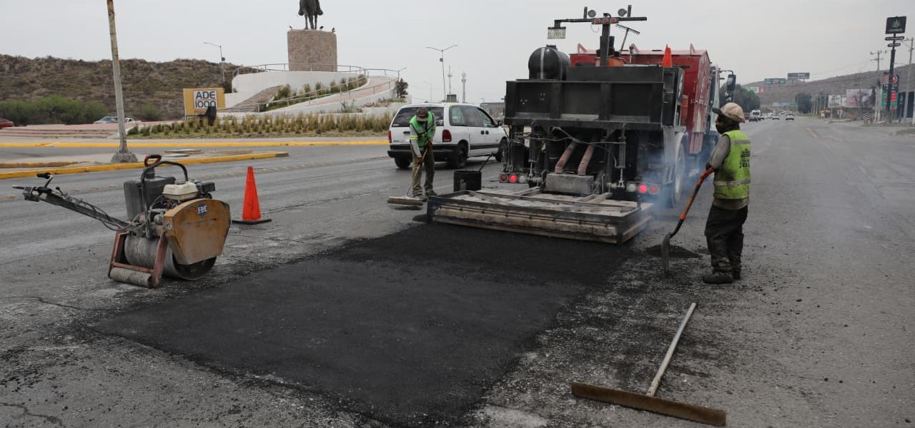 De manera paralela, cuadrillas de la Dirección de Infraestructura y Obra Pública realizan trabajos de reparación del pavimento en puntos específicos sobre el bulevar Venustiano Carranza, una de las vialidades más transitadas de la ciudad, a través de maquinaria especializada a base de calor.