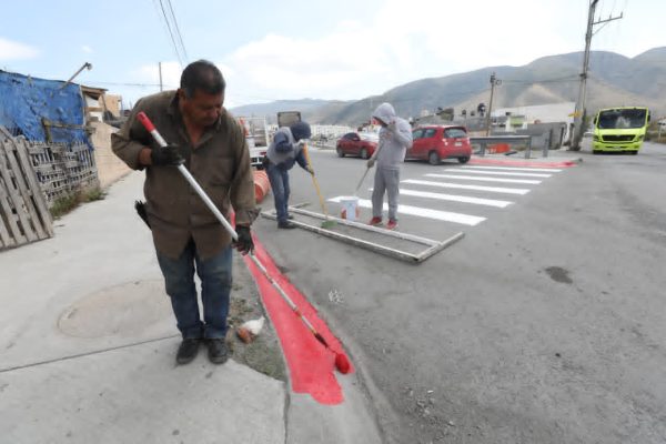 Además, personal del Instituto Municipal de Movilidad Urbana Sostenible (IMMUS) delimitó y pintó los cruces peatonales que se ubican sobre el bulevar Misión Santa Lucía, en sus cruces con las vialidades avenida Cerritos, avenida Santa Eduviges, Virginia Masso Masso, entre otras más.