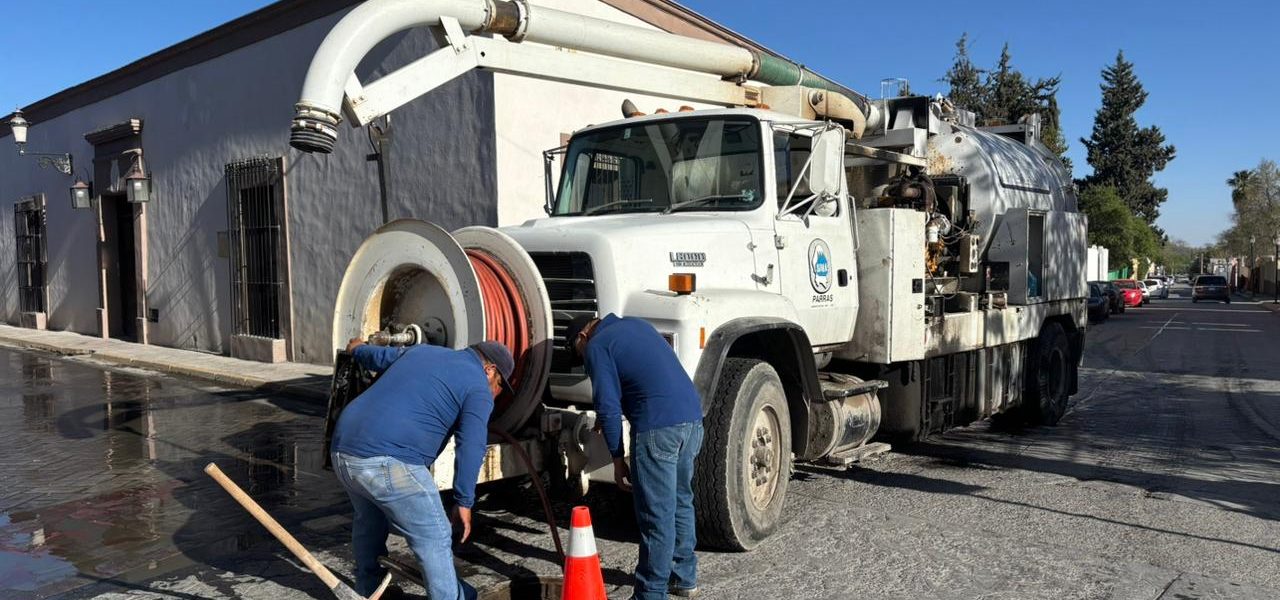 19 Marzo 2026; Parras, Coahuila de Zaragoza.- Para garantizar el correcto funcionamiento de la red sanitaria y prevenir afectaciones a la población, el Sistema Municipal de Aguas y Saneamiento (SIMAS) de Parras realizó trabajos de desazolve en distintos puntos de la zona Centro.