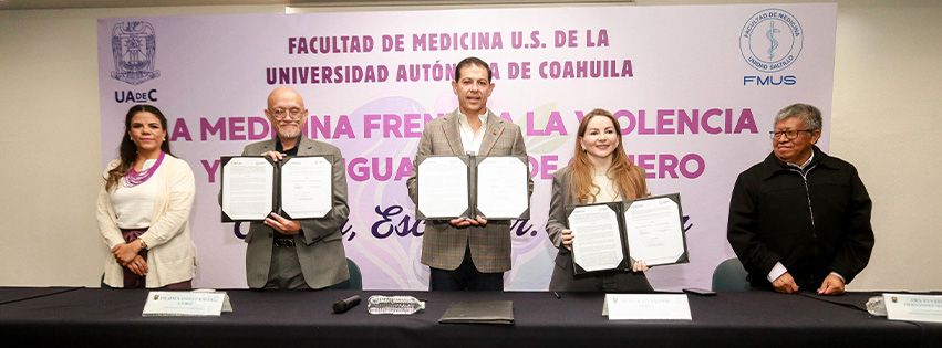 20 Marzo 2026; Saltillo, Coahuila.- En el marco del Día Internacional de la Mujer, la Universidad Autónoma de Coahuila a través de la Facultad de Medicina Unidad Sureste y la Fiscalía de las Mujeres y la Niñez, firmaron la Alianza de Colaboración para la Atención de Mujeres Víctimas de Violencia y con ello se da paso a la inclusión en el Plan de Estudios de la formación de Médico Cirujano el Taller “El papel del médico de primer contacto en caso de violencia de género”.