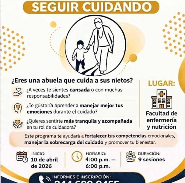 27 Marzo 2026; Saltillo, Coahuila.- La Universidad Autónoma de Coahuila, a través de la Facultad de Psicología y en colaboración con la Facultad de Enfermería y Nutrición “Dr. Santiago Valdés Galindo”, invita a participar en la intervención psicoeducativa “Cuidar(se) para seguir cuidando”, dirigida a mujeres cuidadoras de nietos.