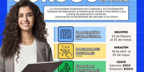 Intégrate al Campus Virtual de la UAdeC con sus Cursos en Línea Por Jorge Moreno 4 Marzo 2026; Saltillo, Coahuila.- La Universidad Autónoma de Coahuila a través de la Coordinación General de Educación a Distancia, invita a la comunidad universitaria…