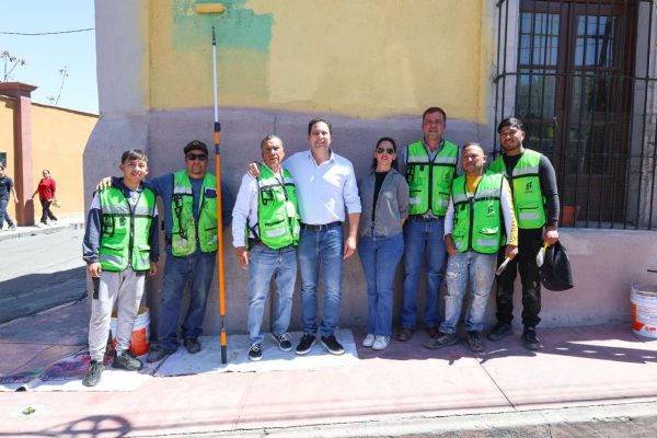 2 Abril 2026; Saltillo, Coahuila.- El alcalde de Saltillo, Javier Díaz González, supervisó los trabajos de embellecimiento de fachadas que se realizan en la calle Miguel Hidalgo a través de la Dirección de Distrito Centro, labores de mejora en las que también se involucraron las áreas de Servicios Públicos y Medio Ambiente y Desarrollo Sustentable del Municipio.