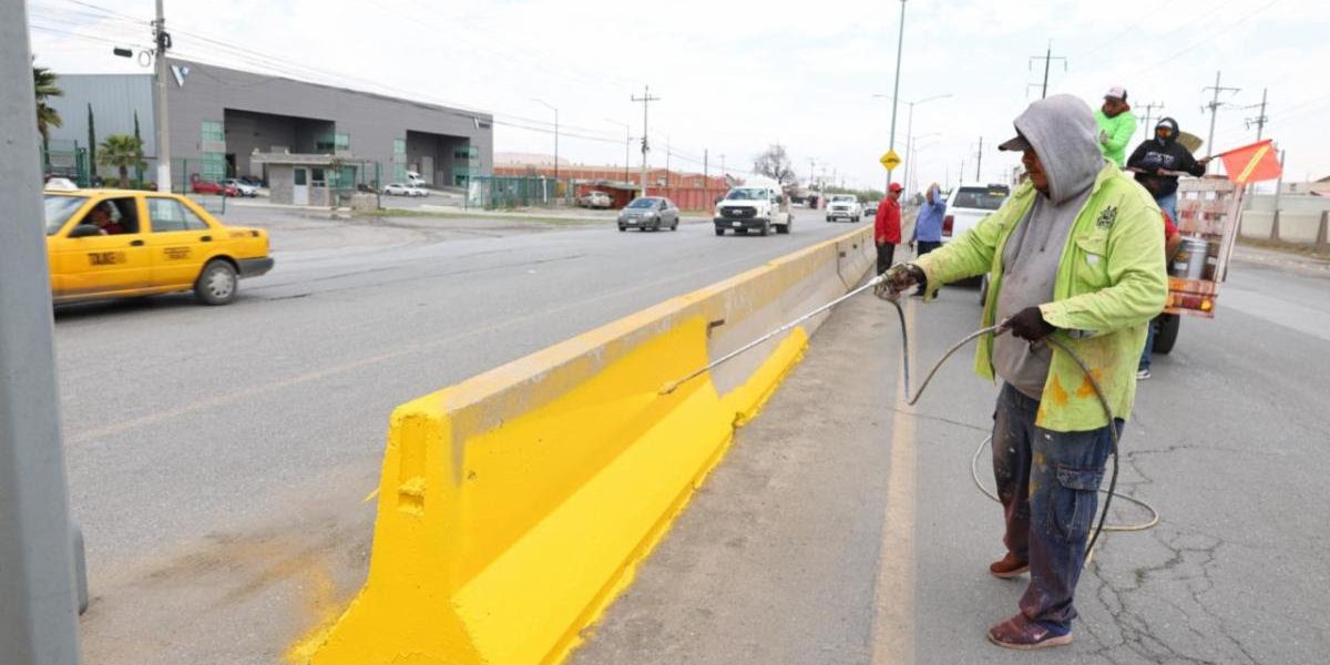 En una primera etapa, cuadrillas del programa “Aquí Andamos” aplicaron pintura de alta durabilidad en el tramo que va del entronque del periférico Luis Echeverría Álvarez con rumbo al norte de la ciudad, con el propósito de garantizar mayor resistencia ante las condiciones climáticas y el alto flujo vehicular de la zona.