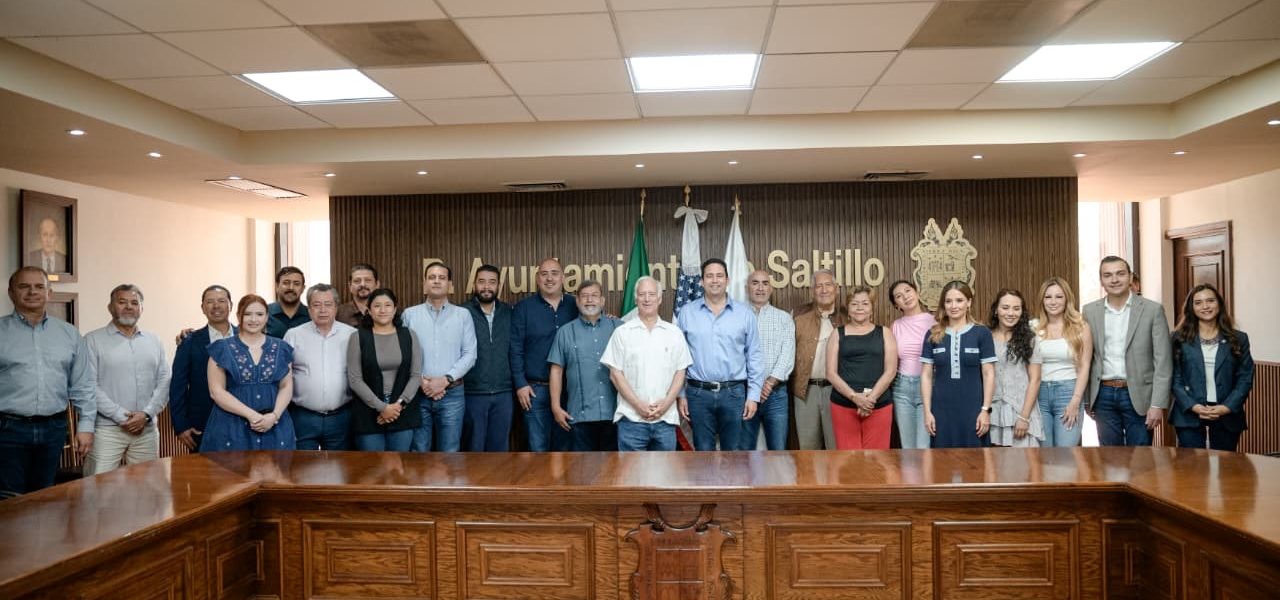 Díaz González, acompañado de quienes integran el Cabildo, titulares de dependencias municipales y representantes de la iniciativa privada, dio la bienvenida al Mayor de Austin y a su comitiva, quienes cumplen una agenda de trabajo en Saltillo.