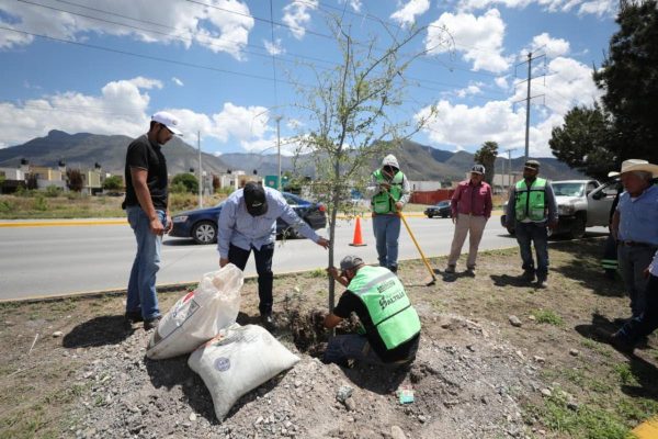 17 Abril 2026; Saltillo, Coahuila.- El Gobierno Municipal, encabezado por el alcalde Javier Díaz González, reforzó las acciones de reforestación a través del programa “Bosques Urbanos Lineales” sobre el bulevar Antonio Cárdenas, a la altura del fraccionamiento Lomas del Refugio, al sur de la ciudad.