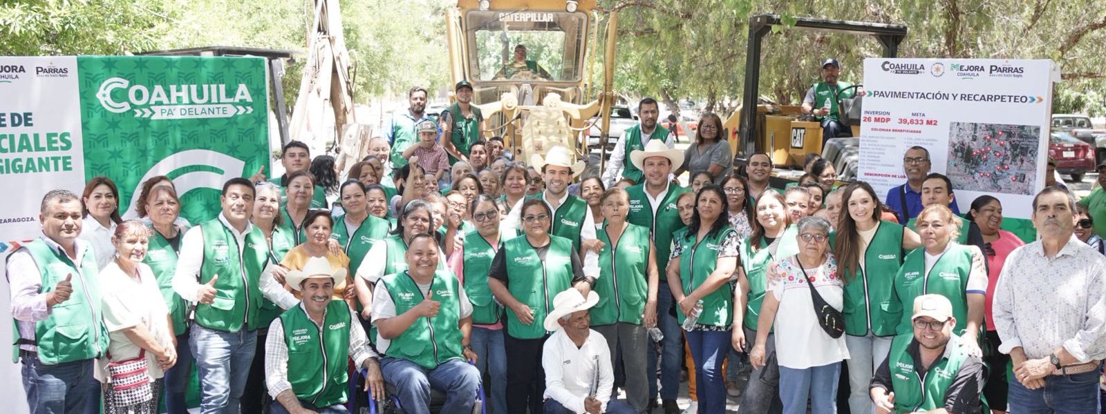 23 Abril 2026; Parras, Coahuila– En los municipios de Parras de la Fuente y General Cepeda, se llevó a cabo el arranque de Obras Sociales a Pasos de Gigante, con el objetivo de elevar la calidad de vida de la comunidad a través de la rehabilitación de espacios y tramos viales.