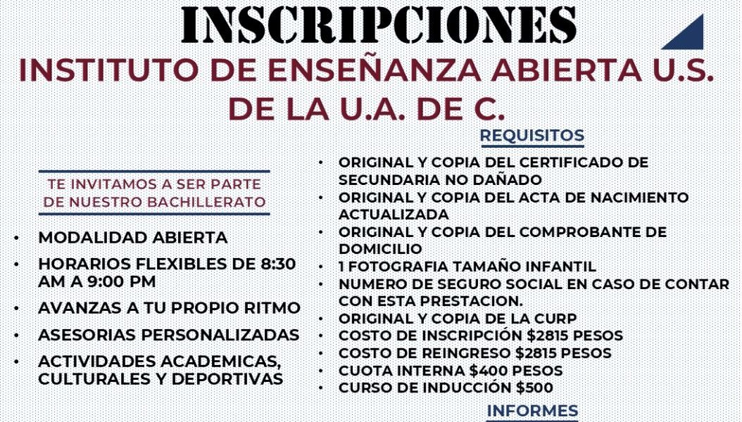 29 Abril 2026; Saltillo, Coahuila.- Durante el mes de mayo, la Universidad Autónoma de Coahuila, convoca a la comunidad en general a continuar sus estudios de educación media superior en el Instituto de Enseñanza Abierta de Saltillo (IDEA), que ofrece la oportunidad de cursar las asignaturas en una modalidad flexible.
