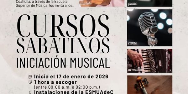 Inscríbete a los Cursos Sabatinos de Iniciación Musical que Ofrece la Escuela Superior de Música de la UAdeC Por Jorge Moreno 15 Enero 2026; Arteaga, Coahuila.- La Universidad Autónoma de Coahuila, a través de la Escuela Superior de Música, invita…