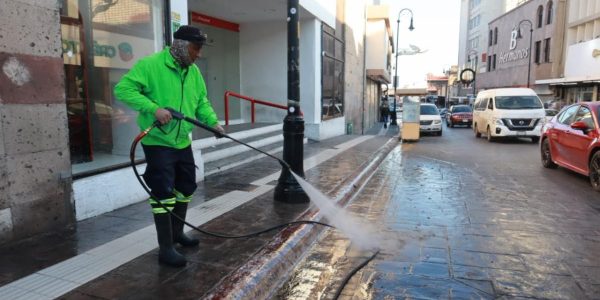 Realiza Saltillo limpieza profunda a banquetas del Centro Histórico