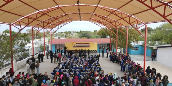 ALUMNOS DE LA PRIMARIA IGNACIO ZARAGOZA RECIBIERON MALLA SOMBRA REHABILITADA COMO FUE EL COMPROMISO DEL ALCALDE EMILIO DE HOYOS MONTEMAYOR