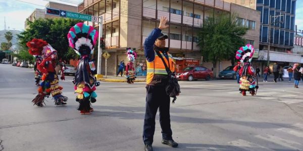 Agentes de tránsito ofrecen seguridad vial durante peregrinaciones