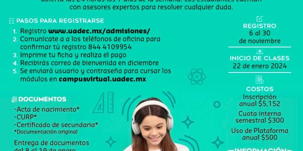 Cursa en la UAdeC el Bachillerato en Línea Por Jorge Moreno 14 Noviembre 2023; Saltillo, Coahuila.- La Universidad Autónoma de Coahuila a través de la Coordinación General de Educación a Distancia, ofrece el Bachillerato en Línea, por lo que…