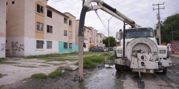 SIMAS Torreón realiza desazolve en drenaje de los Manhattan