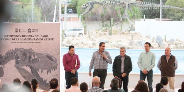 SUPERVISAN MIGUEL RIQUELME Y JOSÉ MARÍA MORALES OBRA DEL LAGO CENTRAL DE LA ALAMEDA, EN RAMOS ARIZPE