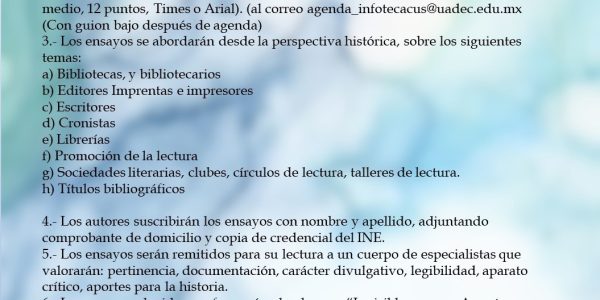 Convoca UAdeC a Postular Ensayos Históricos para Conformar el Volumen “Invisibles Somos. Apuntes para una Historia Bibliográfica de Coahuila” Por Jorge Moreno 1 Diciembre 2023; Saltillo, Coahuila.- La Universidad Autónoma de Coahuila a través de la Infoteca Central “Dr….