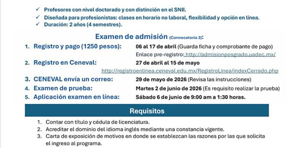 Cursa el Posgrado en Sustentabilidad Alimentaria con Enfoque Ambiental que Ofrece la UAdeC Por Jorge Moreno 13 Abril 2026; Saltillo, Coahuila.- A todos los profesionistas interesados en el desarrollo sostenible, la Universidad Autónoma de Coahuila, a través de la Dirección…